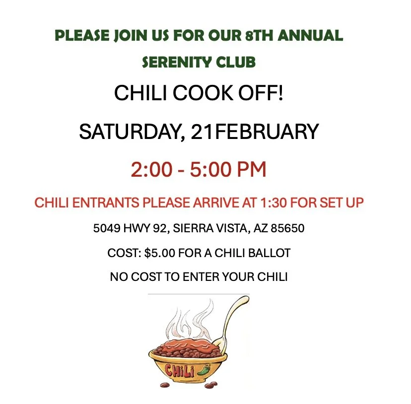 2:00 - 5:00 PM, East Room Annual Chili Cook-Off